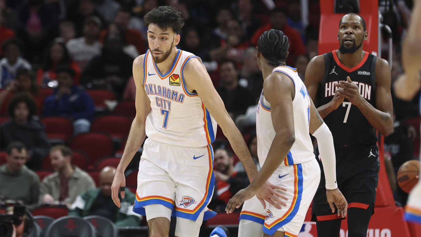尽管俄克拉荷马城雷霆队的全明星球员谢伊·吉尔杰斯-亚历山大和杰伦·威廉姆斯在进攻端表现挣扎,但主教练马克·戴格诺特仍然见证了这对组合带领球队以111-91客场战胜休斯顿火箭。吉尔杰斯-亚历山大对切特·霍尔姆格伦给予了全明星级别的赞扬,这位首发前锋的防守帮助雷霆在最后一节将火箭的得分限制在16分。