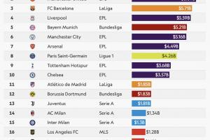 在线娱乐-合理吗❓美媒列全球俱乐部估值TOP50:美职联19队多于英超14队