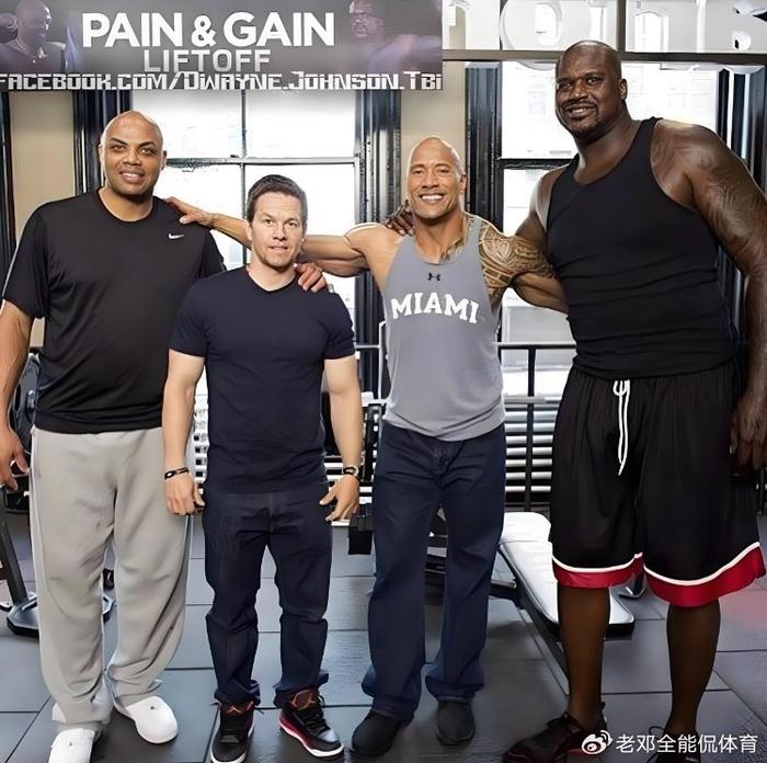 强森身高1米9一身腱子肉,这在普通人里已经算是身材天花板了。他也是因为如此,在好莱坞饰演很多硬汉角色,他的好身材为自己带来了巨大财富。不过我们眼里天花板,在NBA球星眼里完全不够看。这次跟奥尼尔和巴克利合影,就成了NBA名场面之一。我们眼里高大威武的强森,在奥尼尔面前,真就是小鸟依人的感觉。
